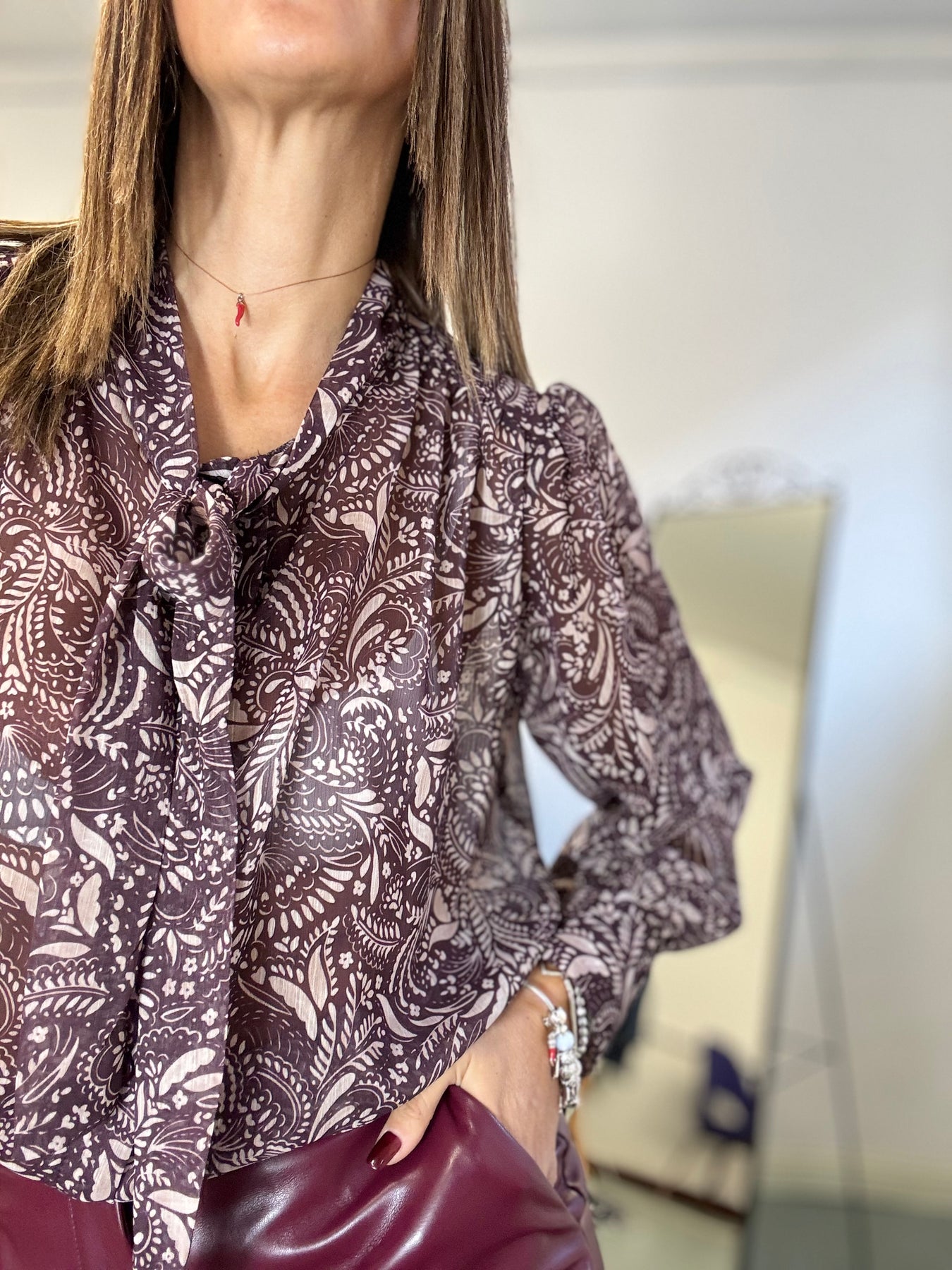 Blusa, taglio camicia con polsini e allacciatura con fiocco al collo, vestibilità morbida e regolare veste fino a taglia 44, bellissima da usare da sola o sotto una giacca.