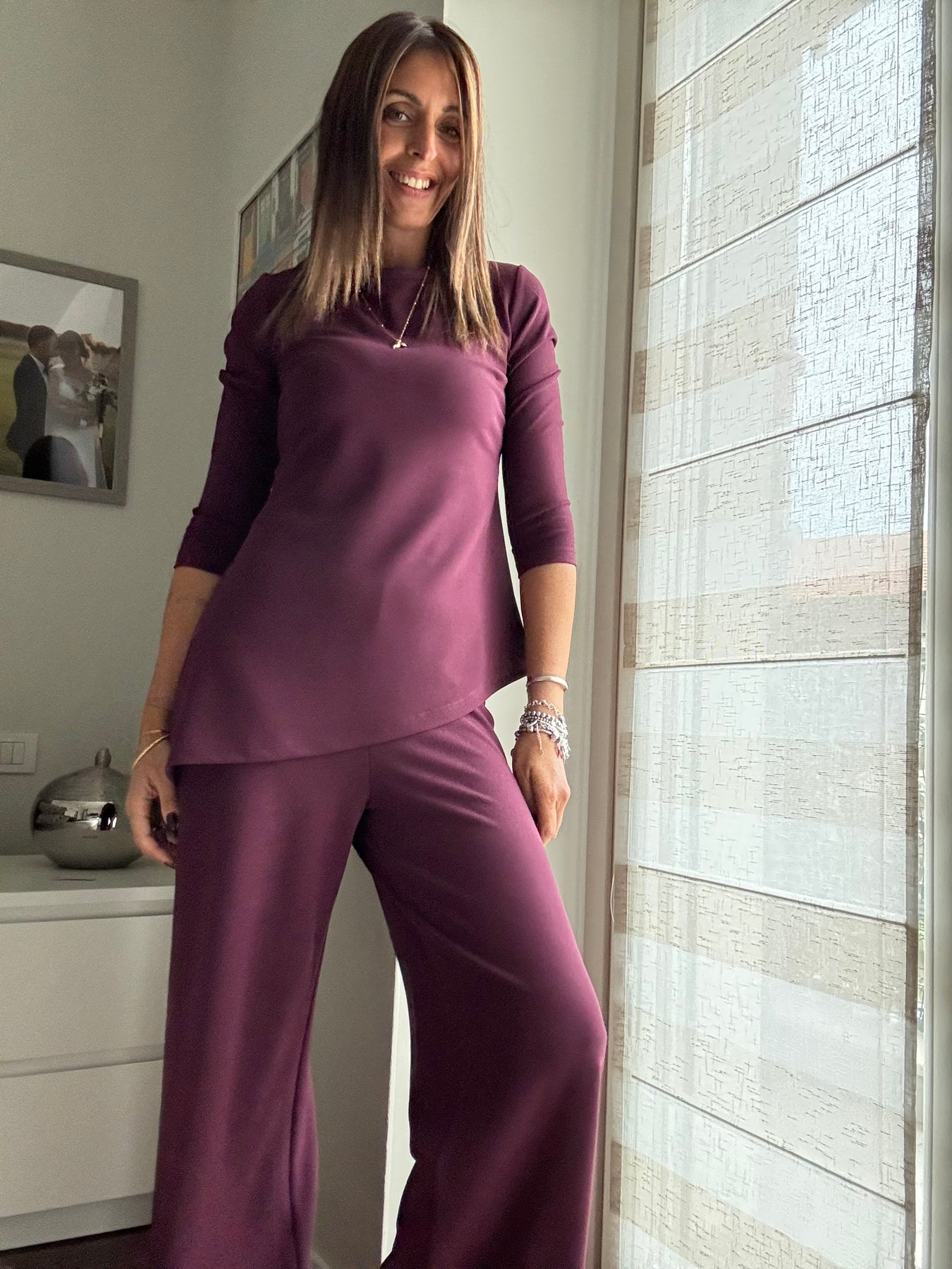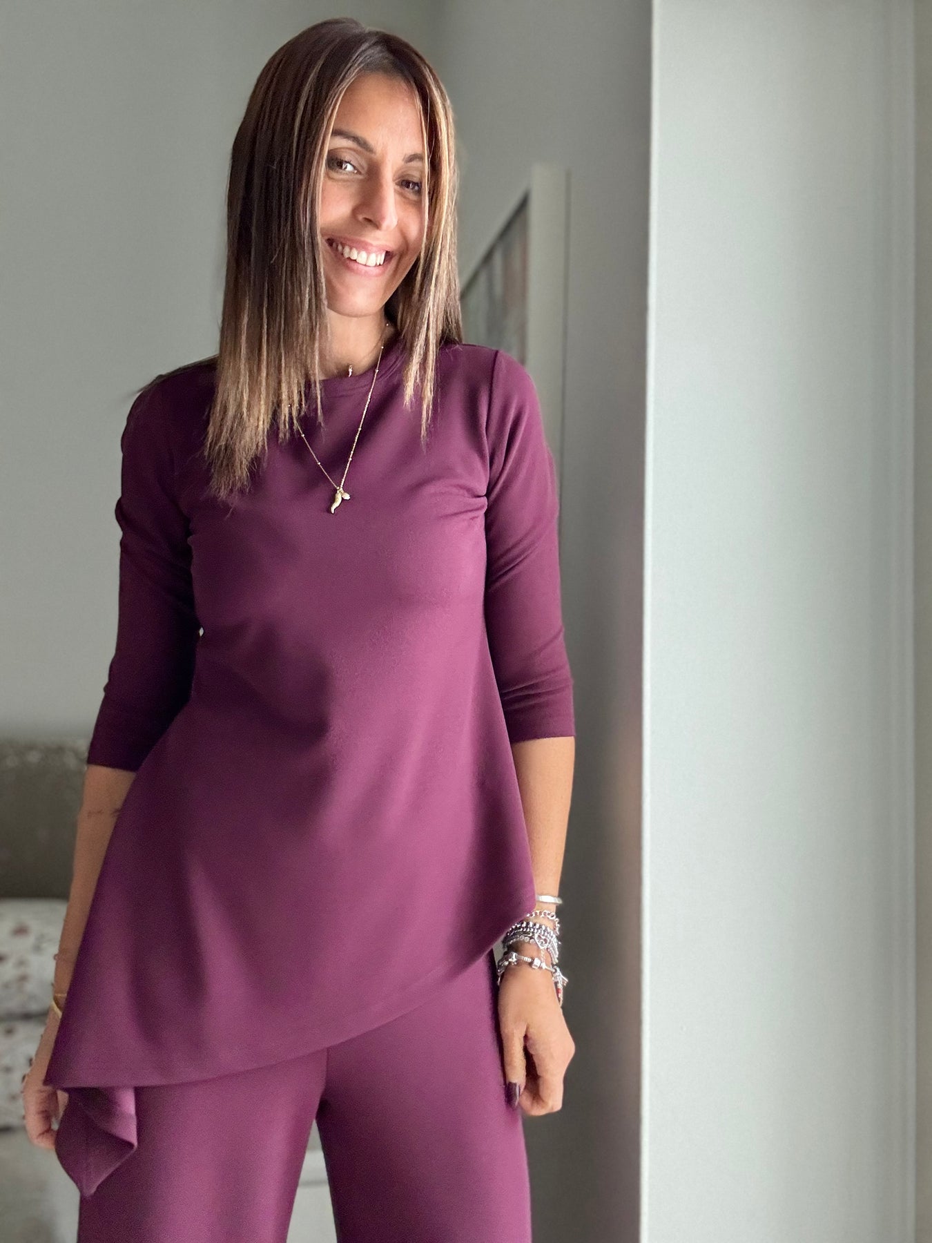 Coordinato con le taglie composto da pantaloni con elastico fluido morbidissimo che praticamente ti scivola addosso, e sua blusa manica lunga svasata di lato che crea una punta, un bellissimo completo che può essere sportivo elegante a seconda dell’uso che ne farai! Vestibilità regolare, io indosso una taglia small nonostante io sia alta 1.74.