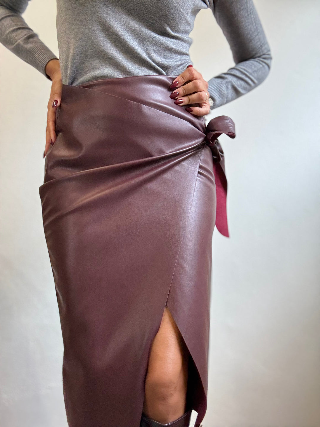 La gonna di ecopelle col fiocco