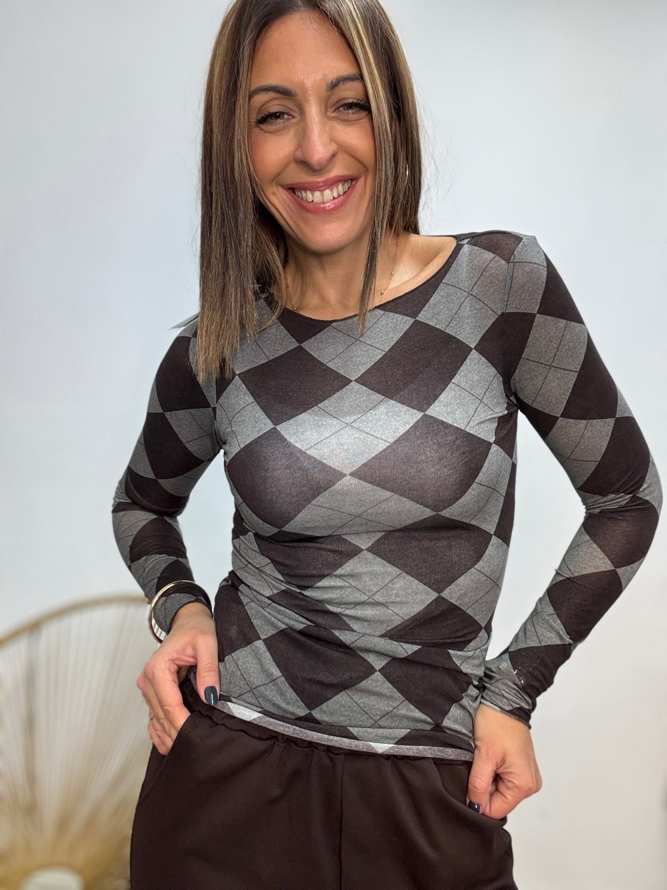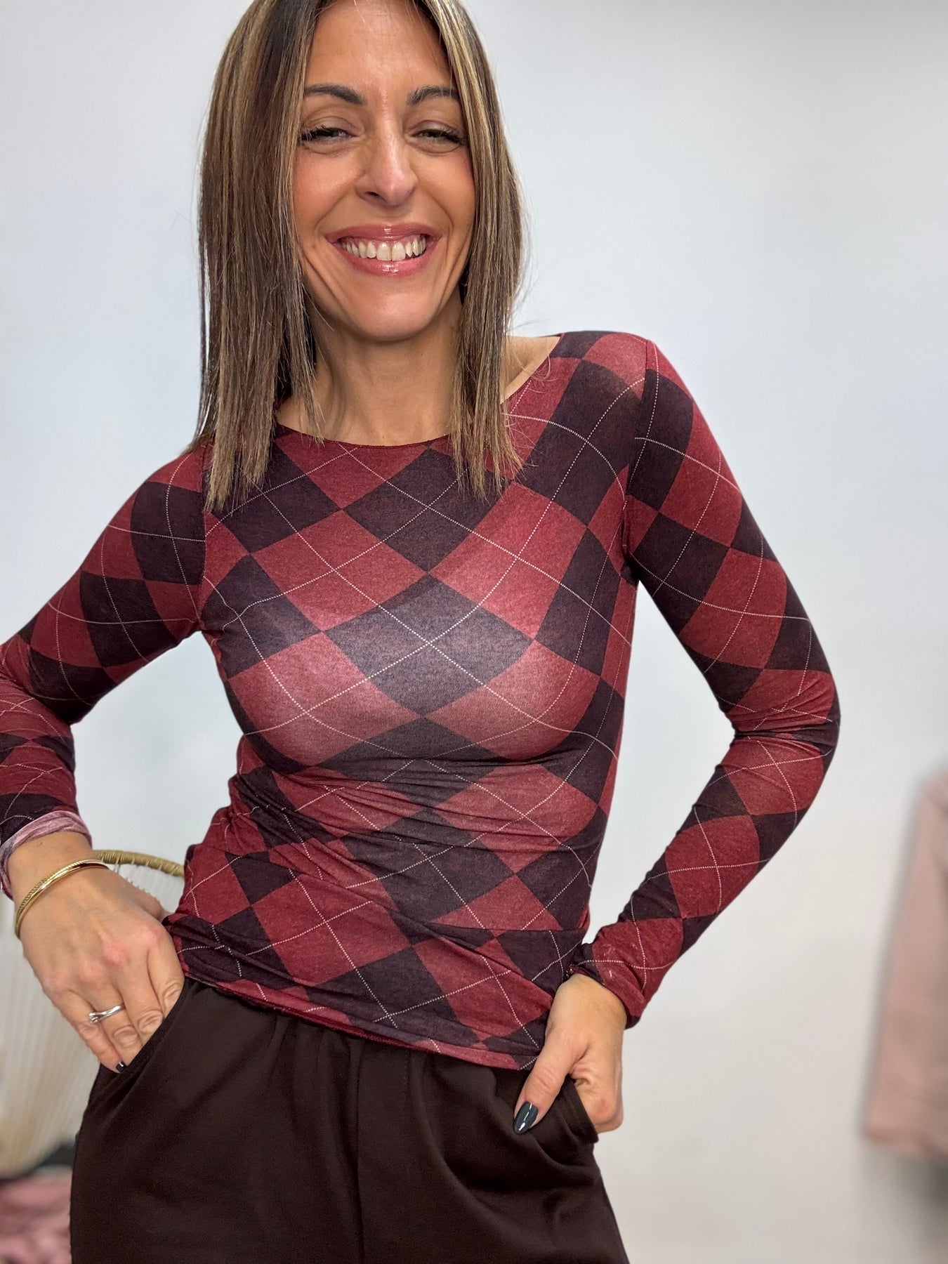 Cachemiretta Fantasia con rombi, disponibili in due varianti colore. Veste fino a taglia 46. Elasticizzata.