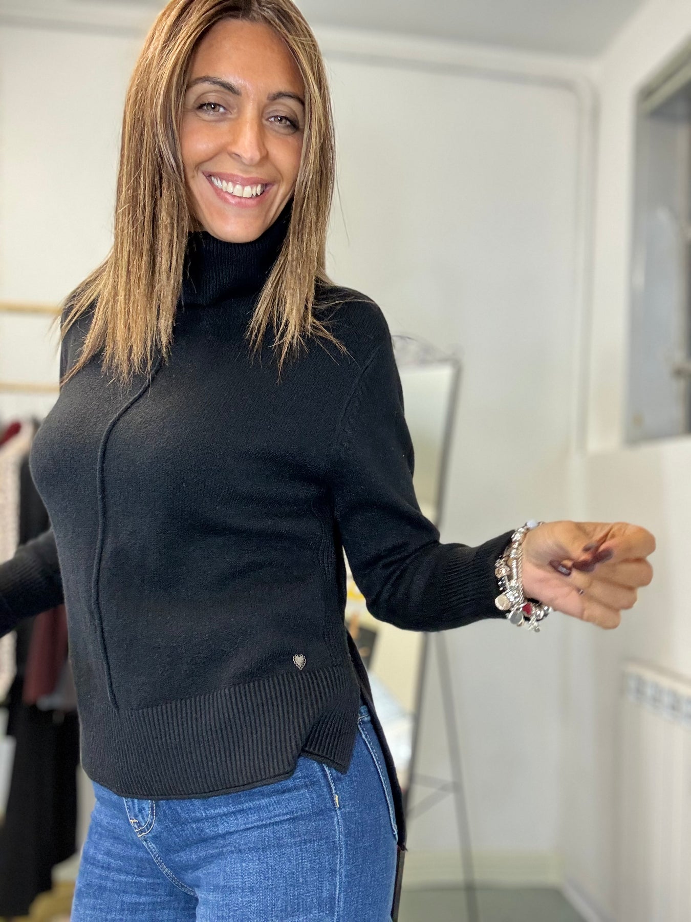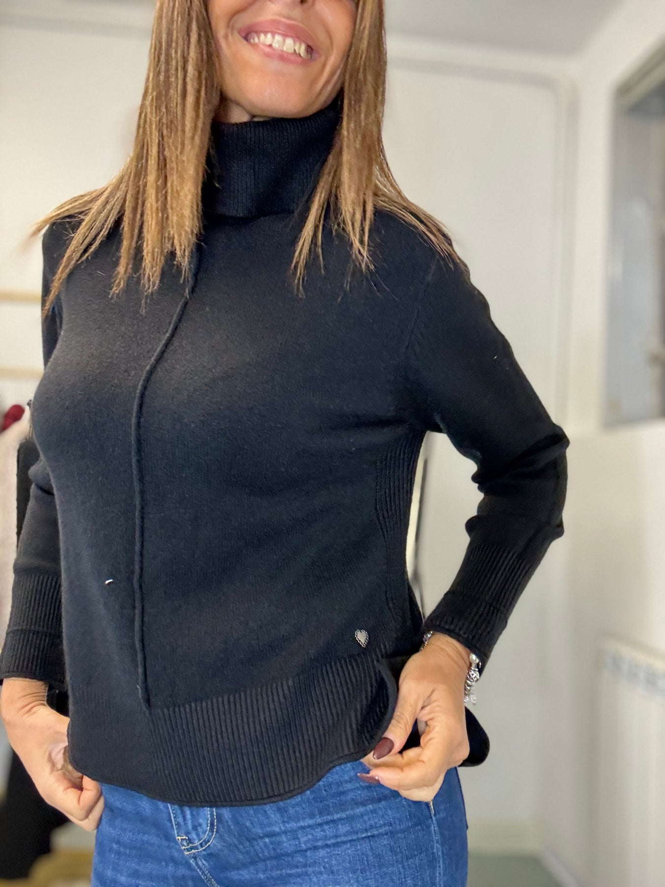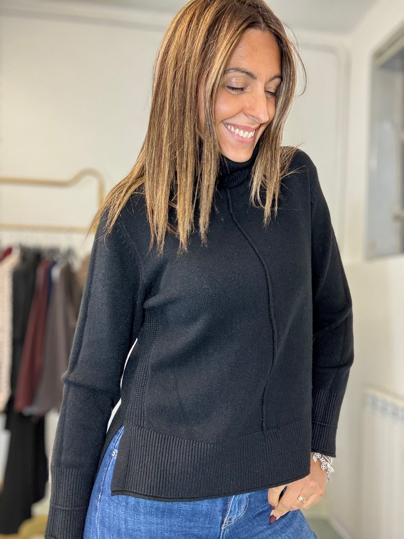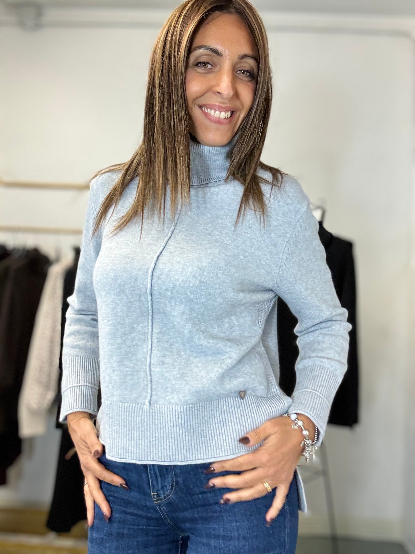 Morbido Pool con collo leggermente ad anello, cucitura davanti per movimentare la uniformità della maglia, sacchetto laterale per non stringere leggermente più lungo di dietro. Veste fino a taglia 46 comodamente, disponibile in diversi colori.