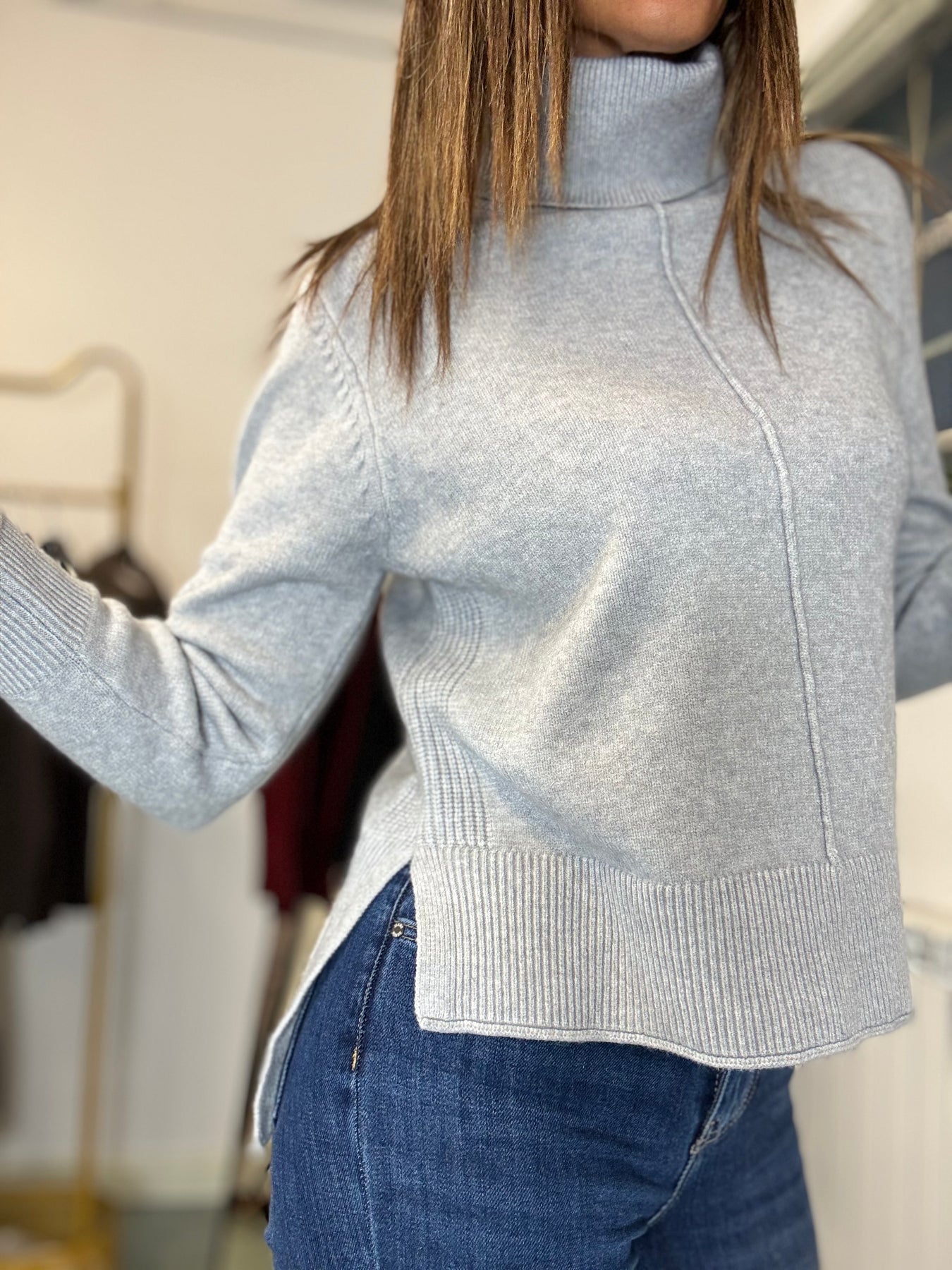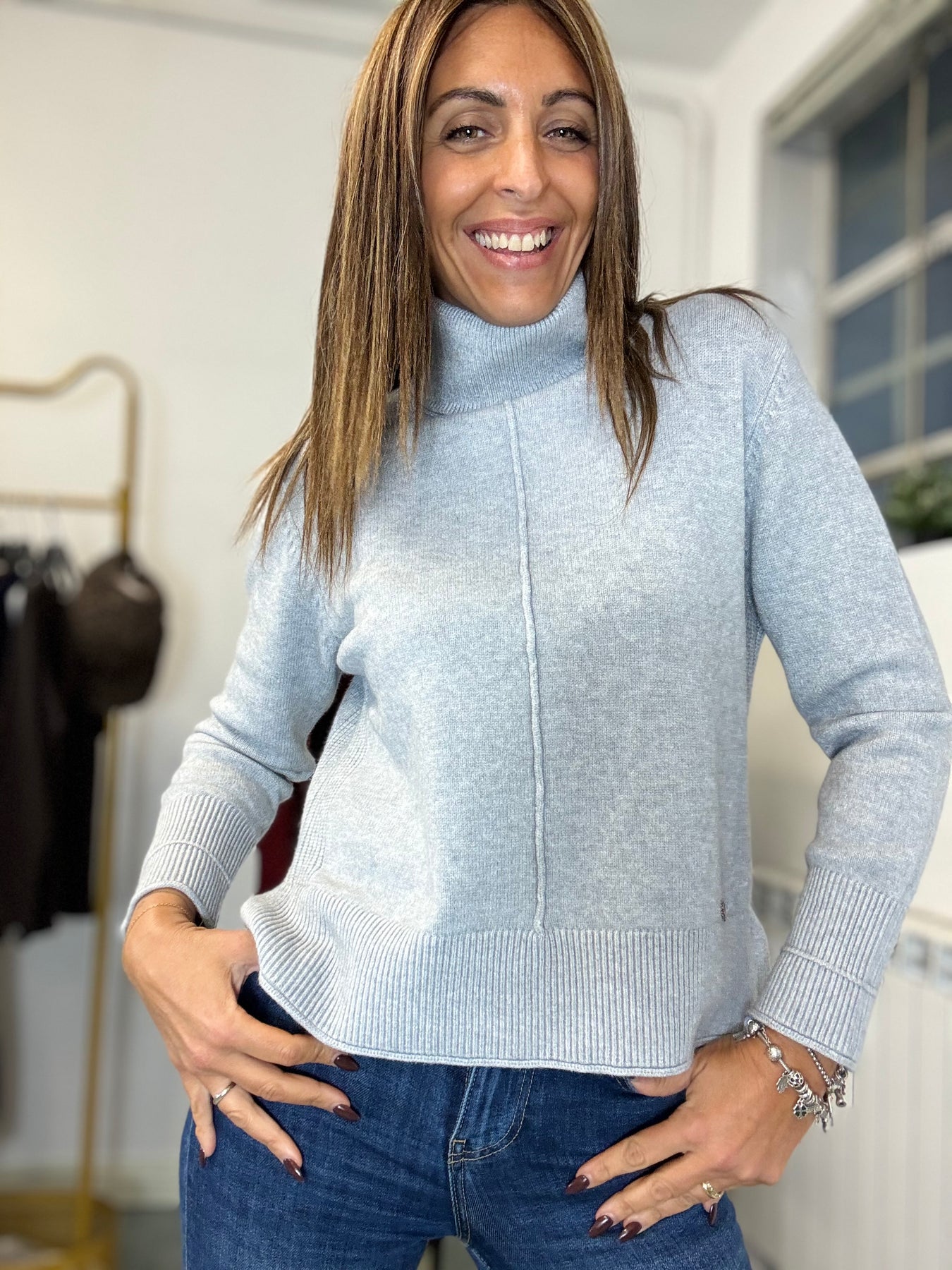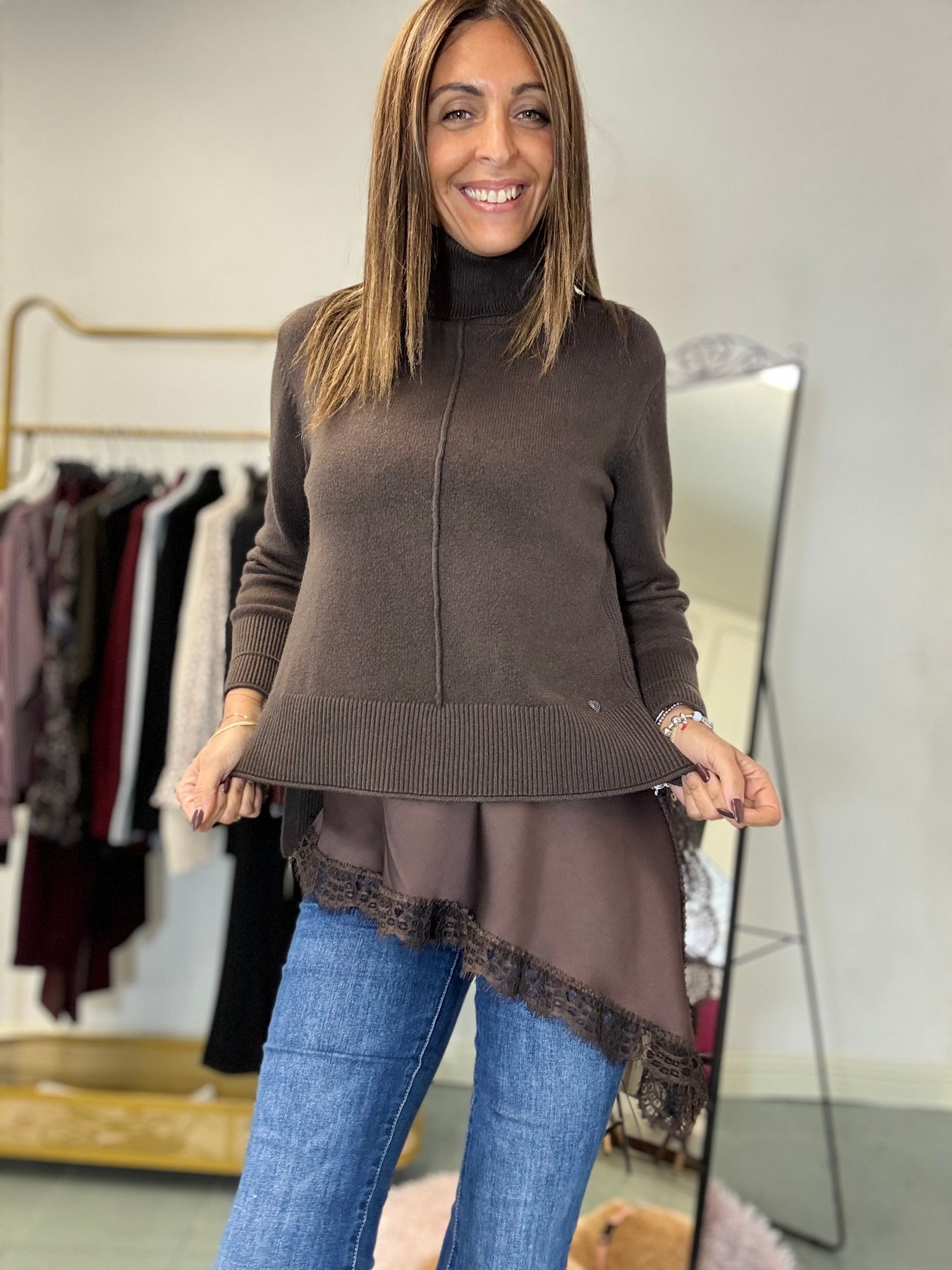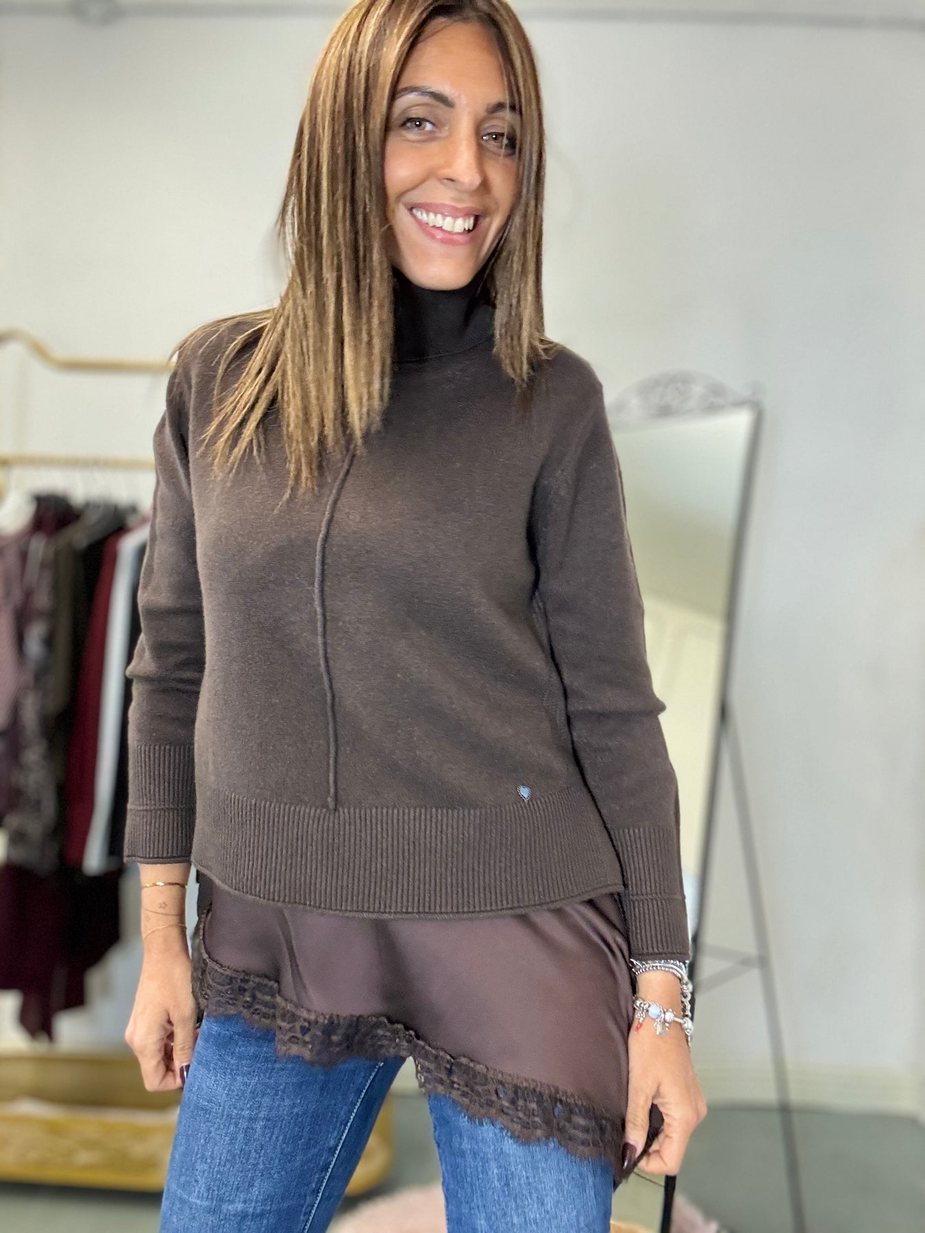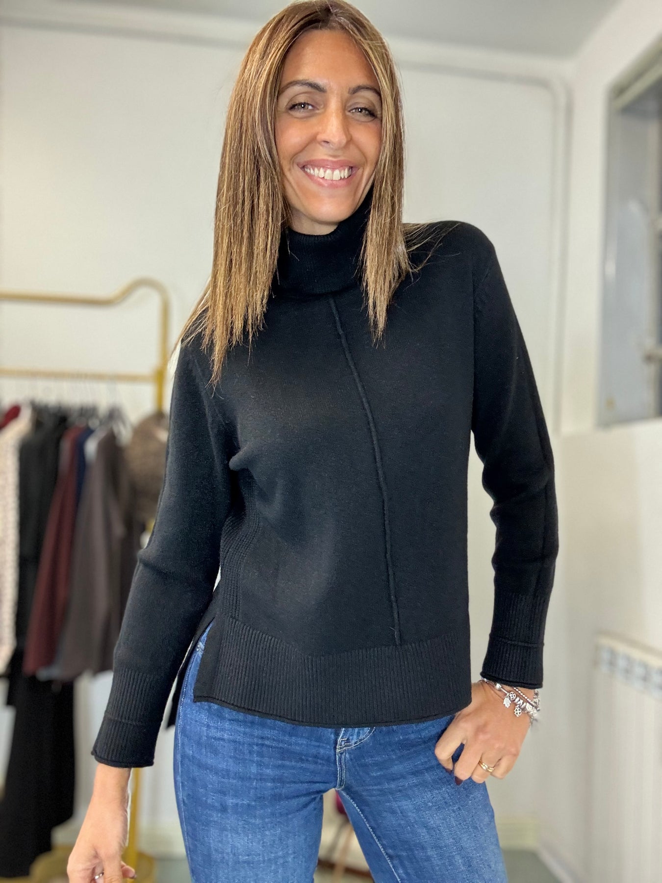 Morbido Pool con collo leggermente ad anello, cucitura davanti per movimentare la uniformità della maglia, sacchetto laterale per non stringere leggermente più lungo di dietro. Veste fino a taglia 46 comodamente, disponibile in diversi colori.