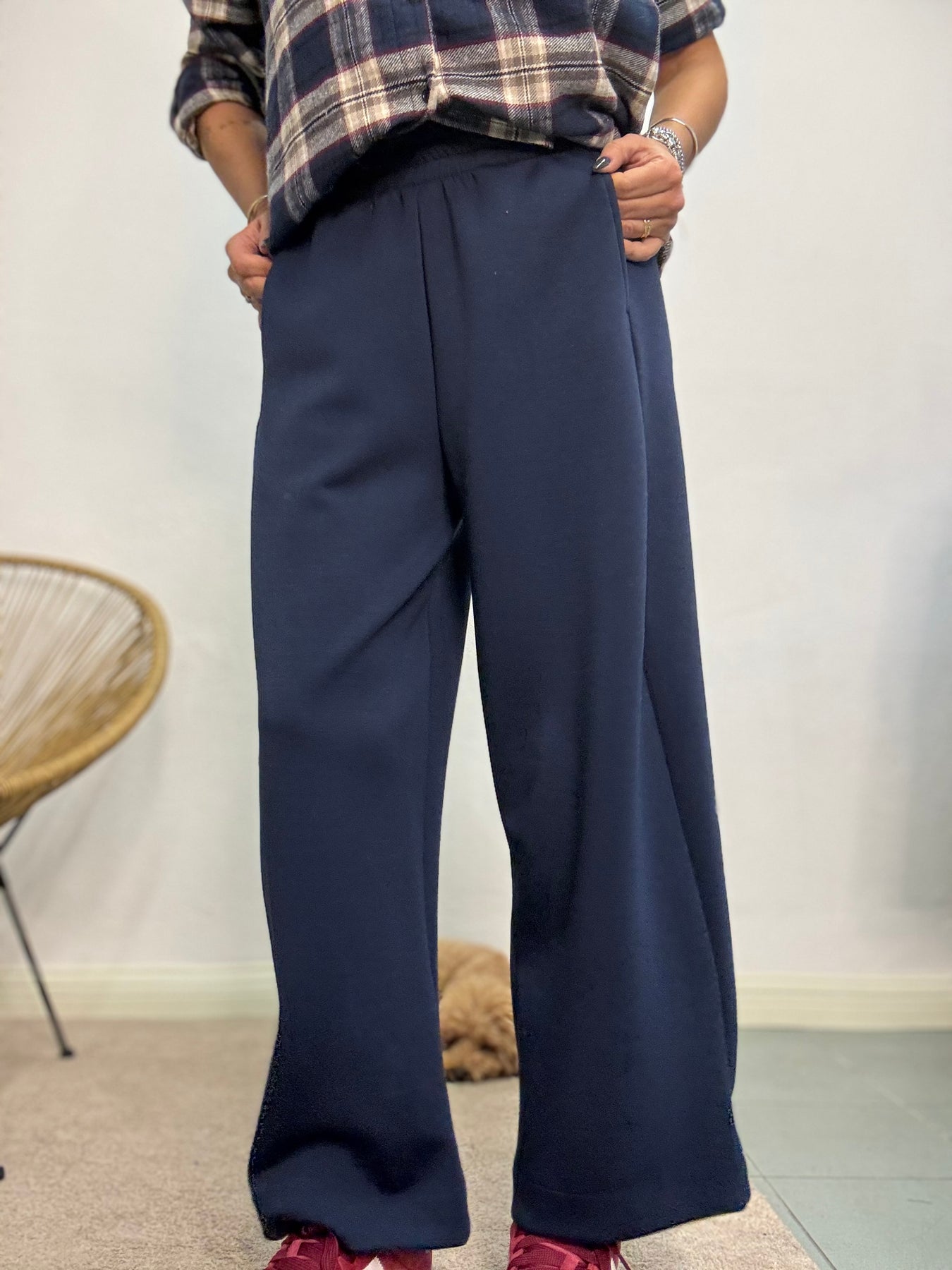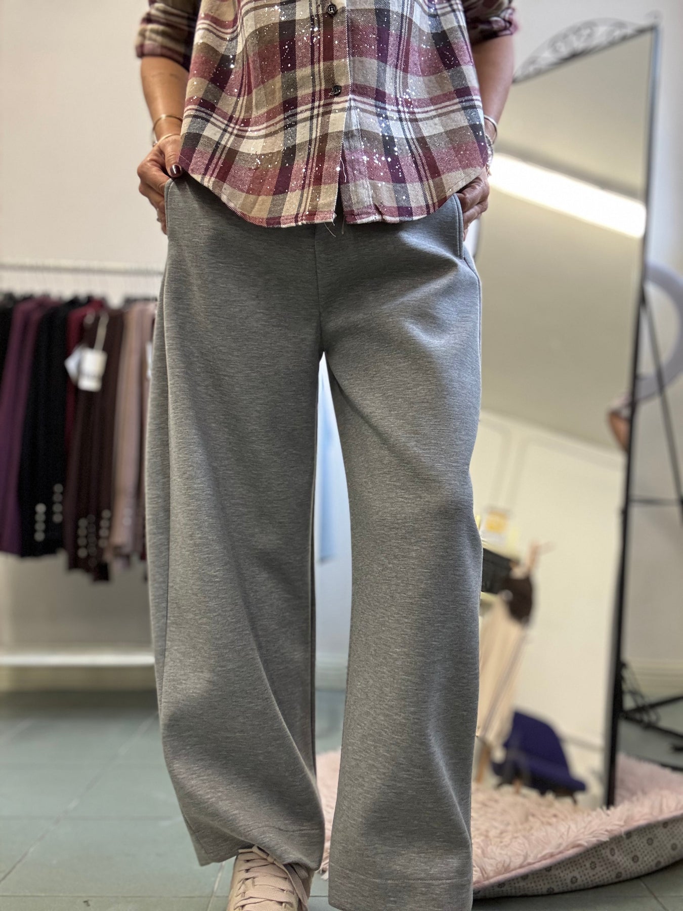 Pantaloni tessuto scuba ammorbidissimo, che non occorrerà neanche stirare, con elastico in vita che veste fino a taglia 46. Vestibilità morbida.