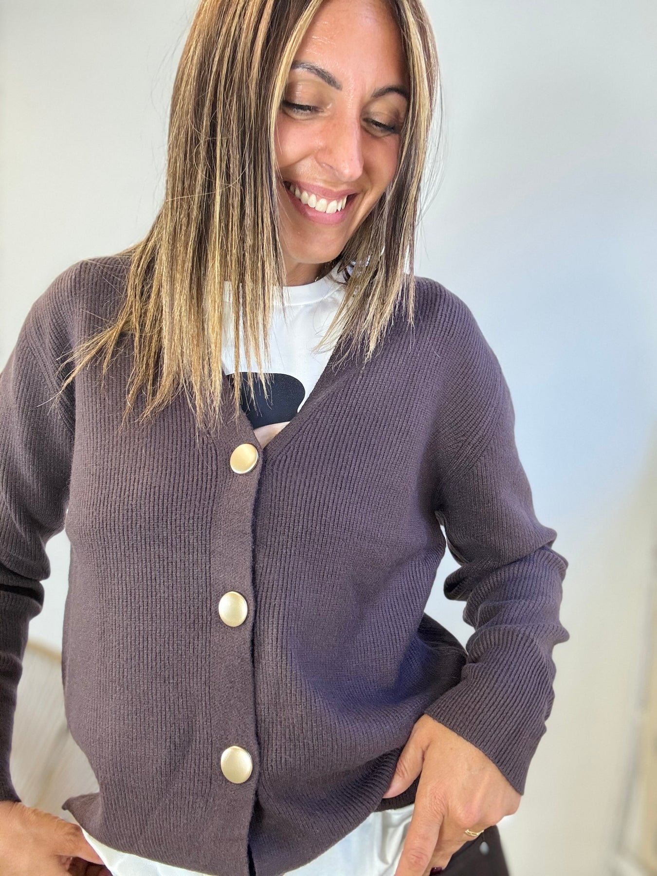 Cardigan a costine con bottoni gioiello , morbido nelle vestibilita.