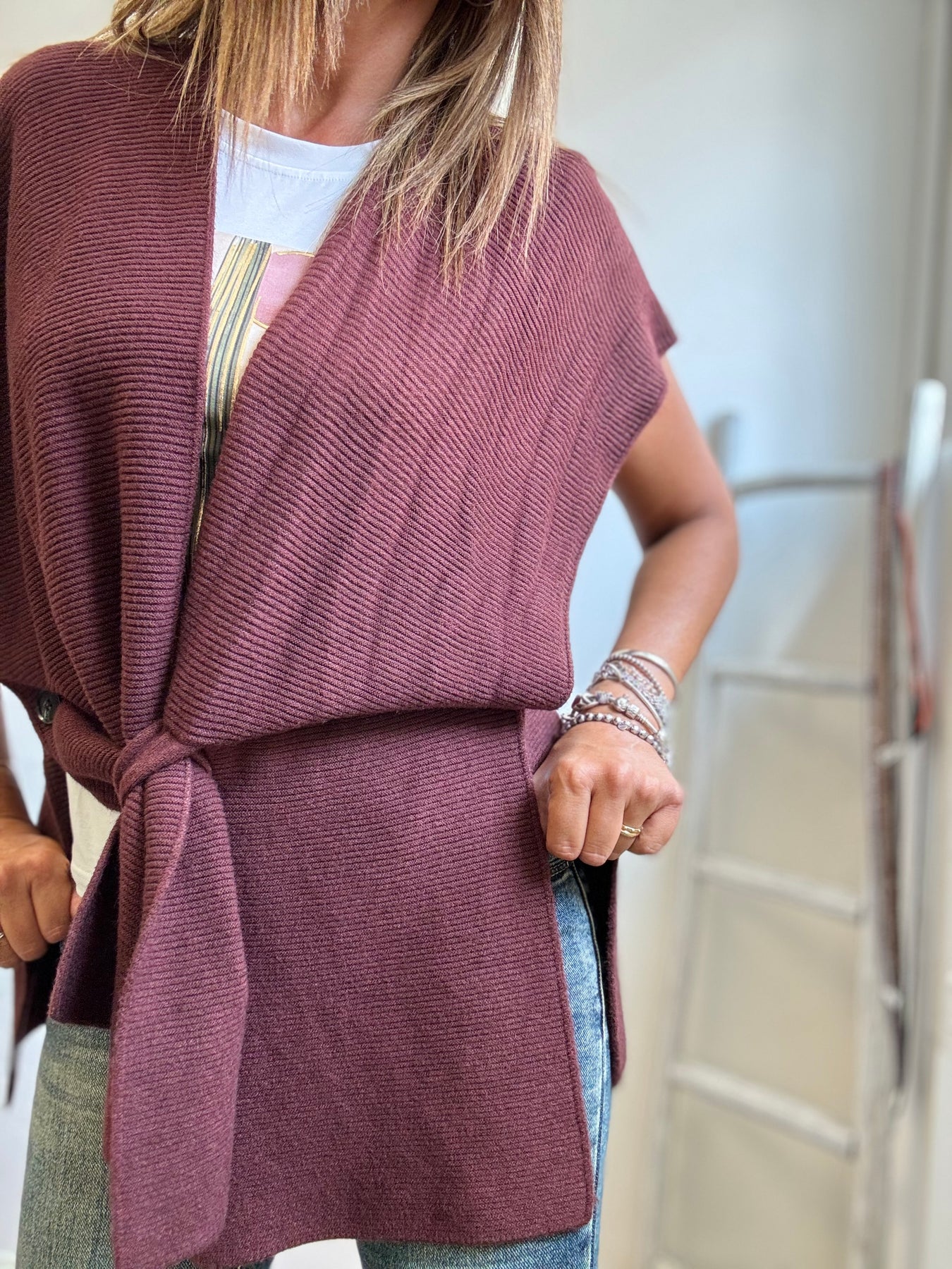 Una bellissima maglia effetto cardigan originale nella sua portabilità in quanto ha la possibilità di essere chiusa lateralmente inserendo un lembo della parte destra all’interno della parte sinistra, creando così del movimento molto particolare.dotata di due bottoni laterali che creano uno spacco, la maglia è leggermente costine, manica corta un po’ scesa veste tutte le taglie dei ideale sia nel periodo di mezza stagione per essere indossata con una T-shirt che più avanti con un lupetto in cachemire o una camicia. La sua forma e la sua struttura ne garantiscono un’eccezionale vestibilità ma soprattutto un’eleganza innata.