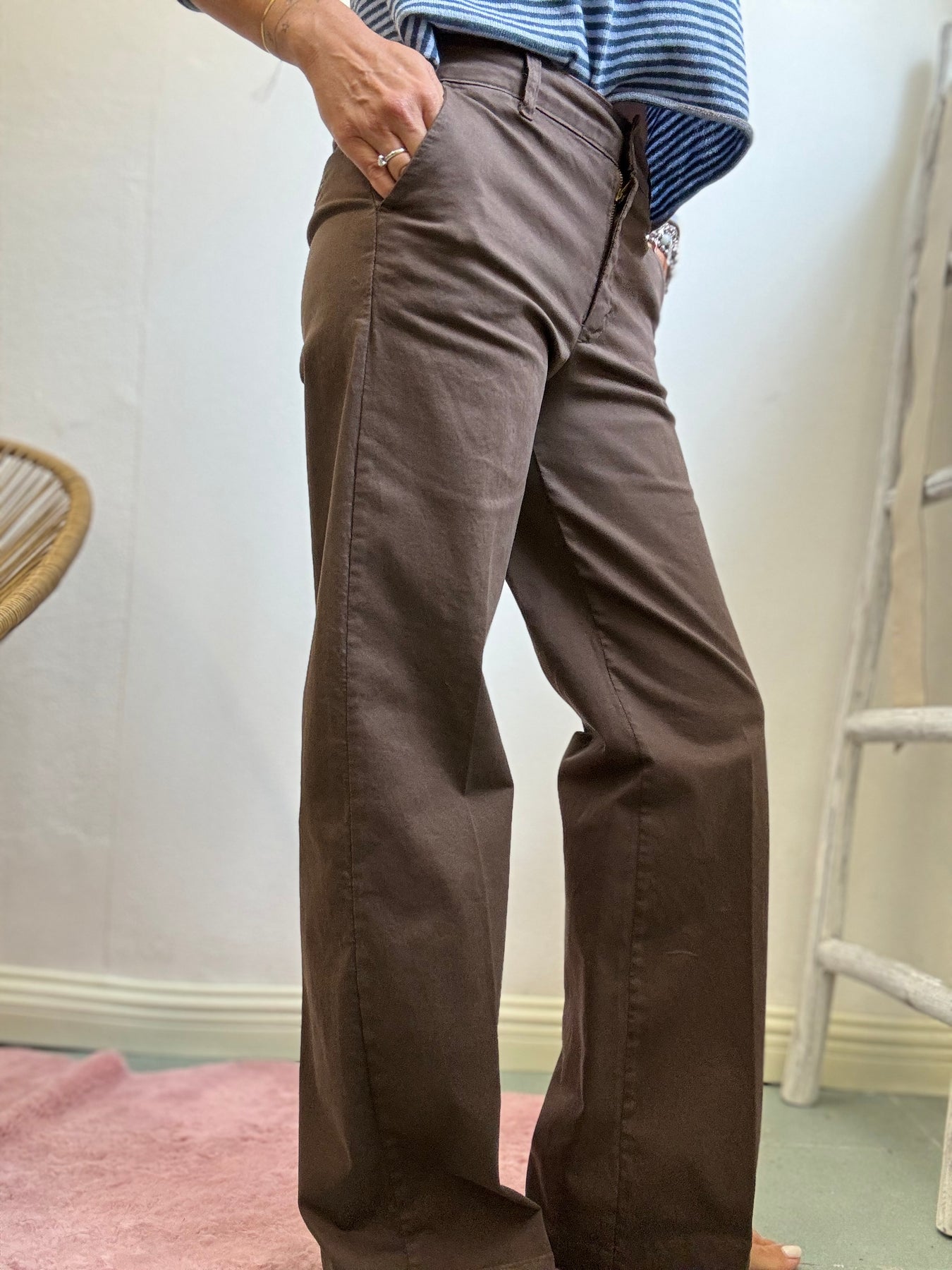 Pantaloni dal taglio, palazzo elasticizzato, veste comodo . Presenta tasche e bottone in vita. La modella indossa la taglia S ed è alta 1.74