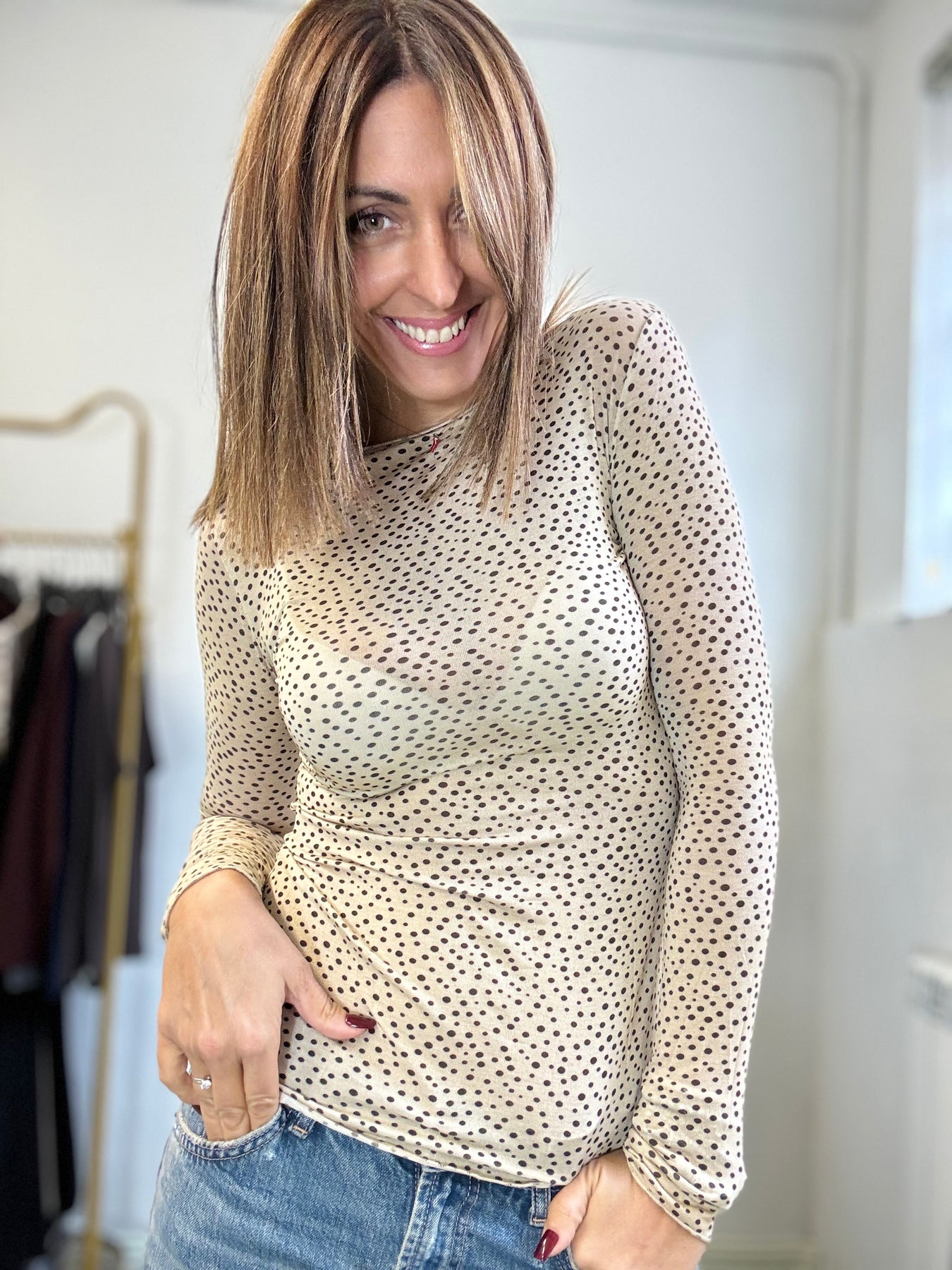Cachemiretta manica lunga misto cachemire , fantasia pois .